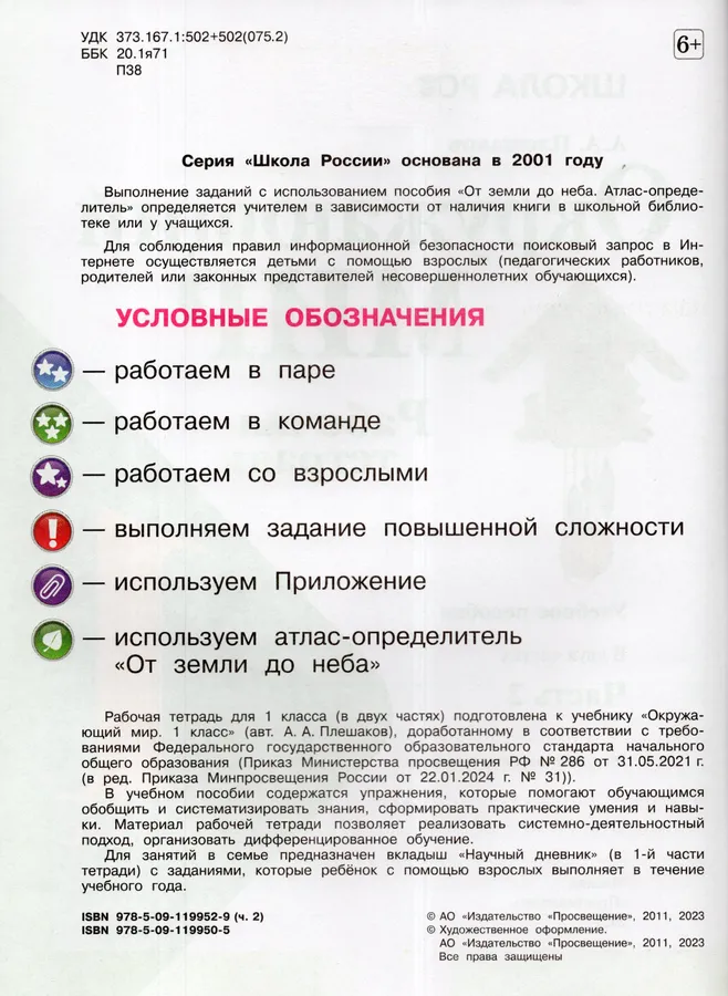 Рабочая тетрадь для 1 класса (в двух частях) подготовлена к учебнику "Окружающий мир. 1 класс" (авт. А.А.Плешаков), доработанному в соответствии с требованиями Федерального государственного образовательного стандарта начального общего образования (Приказ Министерства просвещения РФ №286 от 31.05.2021 г. (в ред. Приказа Минпросвещения России от 22.01.2024 г. №31)).